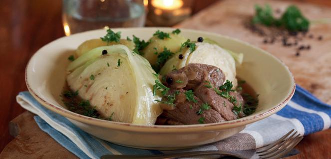 90 Nº3 2022 Fårikål Høsten er tid for fårikål. Så kok en stor kjele med minst like mye hodekål som kjøtt, og inviter venner eller familie rundt bordet. Ingredienser for 4 porsjoner: 1,5 kg hodekål | 1,5 kg fårikålkjøtt | 4 ts hel pepper | 2 ts salt | 3 dl vann Fremgangsmåte 1 Skjær kjøttet i serveringsstykker om det ikke er ferdigdelt. 2 Del kålen i to og skjær i skalker. 3 Legg kjøtt og kål lagvis i en rommelig kjele med salt og pepper mellom lagene. 4 Hell på vann og kok opp. Skru ned varmen, legg på lokk og la fårikålen småkoke i ca. 2 timer til kjøttet løsner fra benet og er mørt. 5 Server fårikål rykende varm med gode kokte poteter og gjerne med et persilledryss. Tips: La en chili (delt i 2 på langs uten frø), 1 ss finhakket ingefær og 2 fedd revet hvitløk koke med. Du kan også la gode skiver av gulrøtter, sellerirot og /eller persillerot koke med den siste timen.