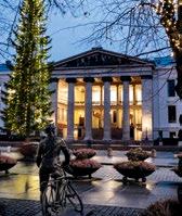 Til venstre: Statue av Gunnar Sønsteby på sykkel forran Universitetsplassen. Laget av Per Ung
