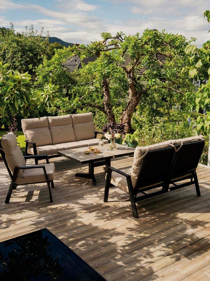 Våre sofagrupper er en sikker investering som holder seg like fine år etter år. Vi bruker bare aluminiumsrammer i hagemøblene våre, slik at de tåler vær og vind og krever minimal innsats for å holdes pene.