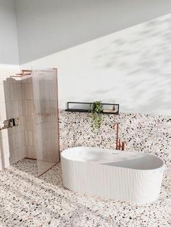Første produkt Alberto bord - jubileumsversjonen er toppet med luksuriøs terrazzo i nøytrale toner.