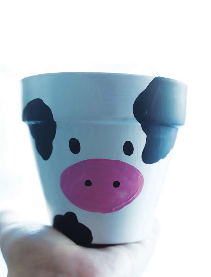 Cows and other livestock are a common sight in the spring, especially after the winter months of cold and seclusion. Many people also pay homage to a beautiful spring day with flowers. Marrying these together, this issue’s DIY Craft is a cow-painted flower pot. Easy and inexpensive, this craft is fun for the whole family. Happy painting!