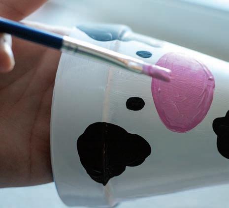 STEP THREE: Paint a pink oval on the pot to resemble a cow’s nose.
