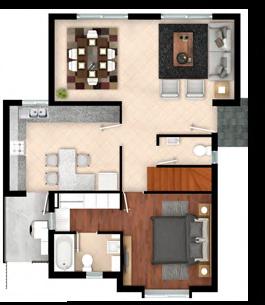 Las ilustraciones y fotografías presentadas, son meramente referenciales y no necesariamente corresponden al producto final. Solo persiguen representar el concepto detrás de los proyectos. Las ilustraciones pueden mostrar opcionales. Equipamiento podrá ser modificado según disponibilidad del proveedor y necesidades de arquitectura. Los precios están sujetos a disponibilidad de productos. El precio no incluye el mobiliario que se muestra en las imágenes, es sólo referencial. El valor de los dividendos ha sido calculado aplicando los subsidios DS19 y DS01, según corresponda, financiando el saldo mediante un CAE del 4%, a 30 años.