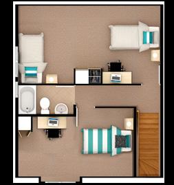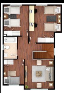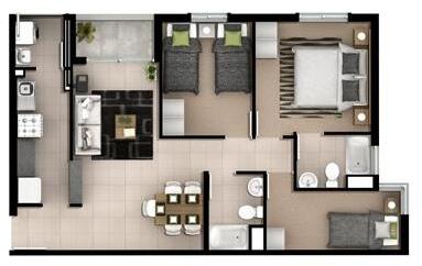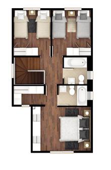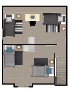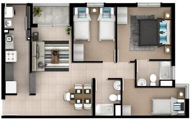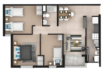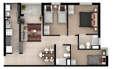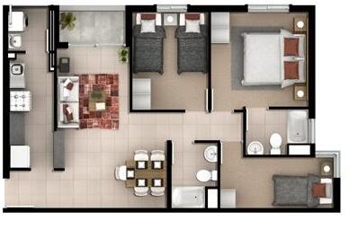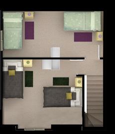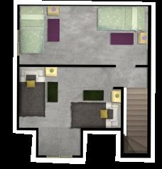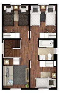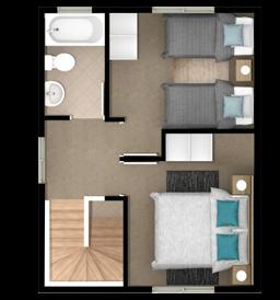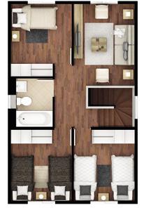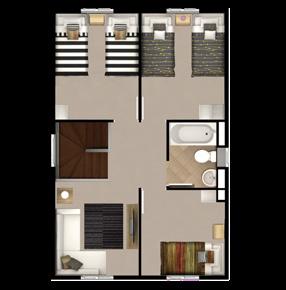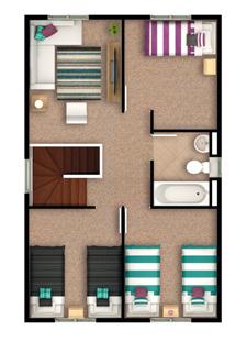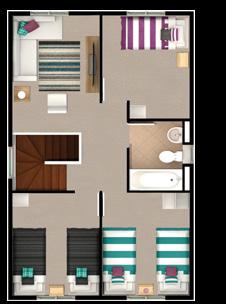 Las viviendas consideran la “ampliación”, ejecución de un tercer dormitorio, solo cuando se trate de subsidios de grupo familiar, quedando 1 dormitorio en primer piso, 2 en segundo piso y un baño en primer piso.