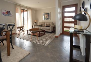 Pastelones de acceso Lavaderos sobre radier Living comedor con piso cerámica Dormitorio principal con piso cerámica