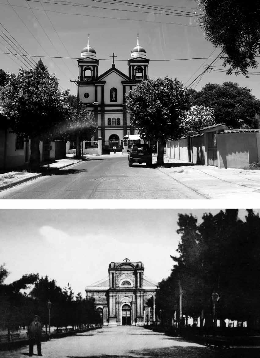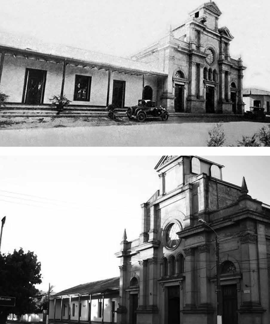 Dos imágenes de 1927 del Templo Parroquial del Niño Jesús de Villa Alegre.