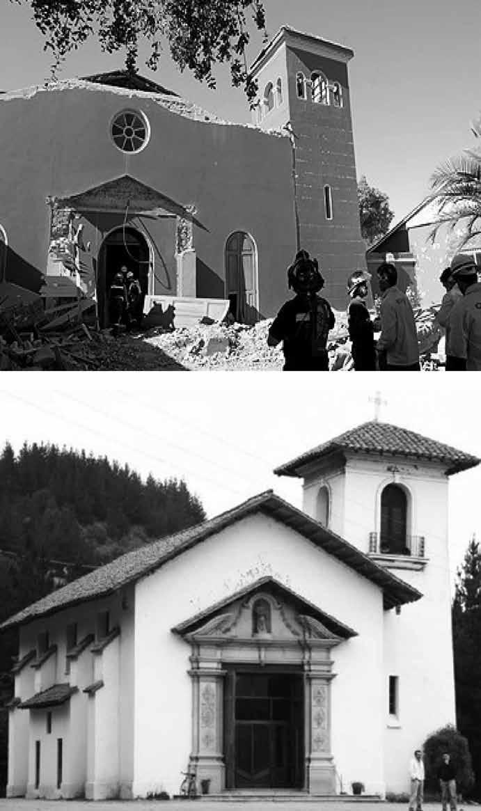 Pero todo ese esfuerzo se viene abajo el 20 de febrero de 1835 en que, el violento terremoto de ese año destroza todo lo levantado con tanto sacrificio a lo largo de los años.