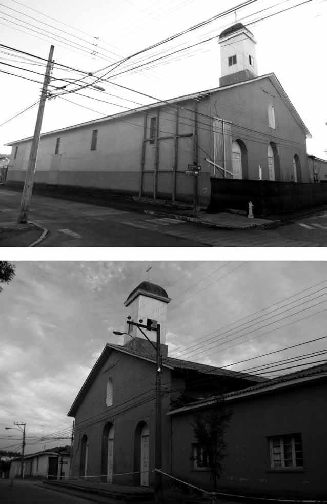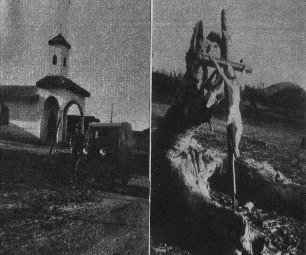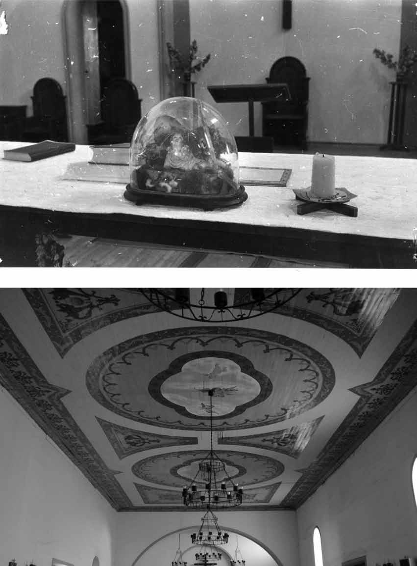 Dos vistas de la Parroquia de Santa Cruz de Abranquil de Yerbas Buenas, incendiada en 1935.