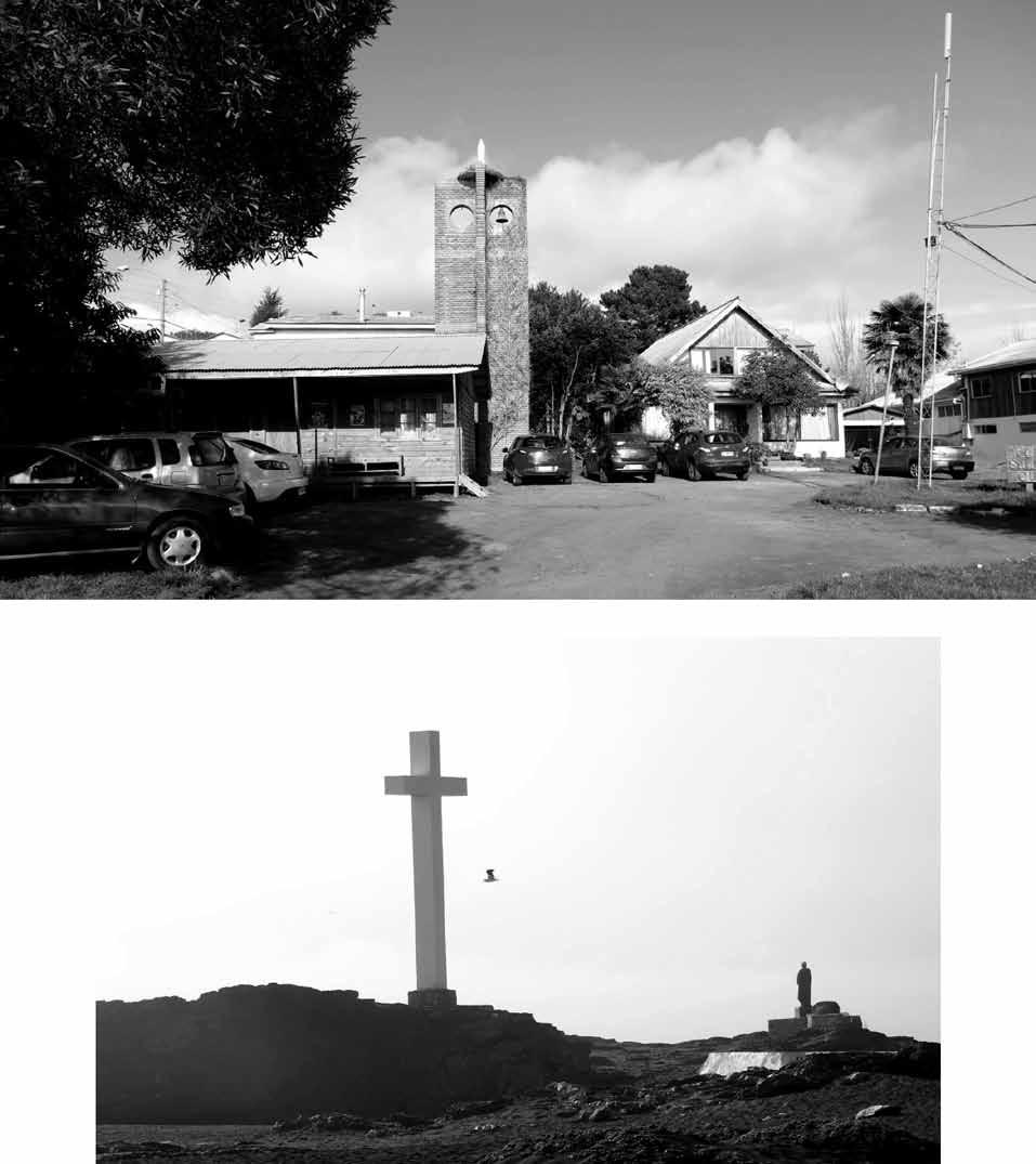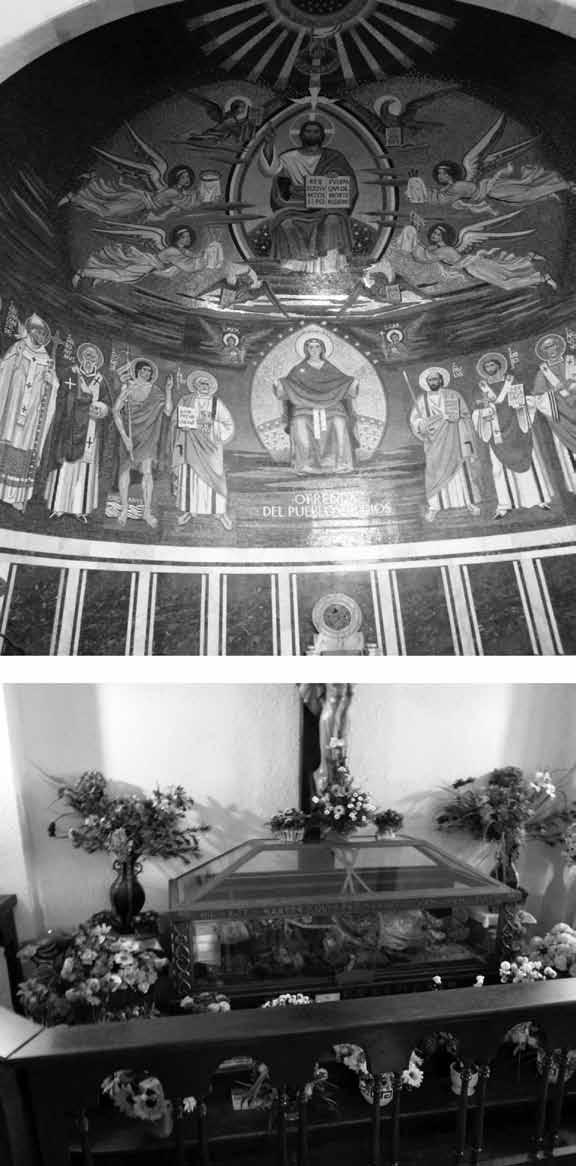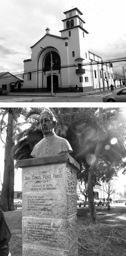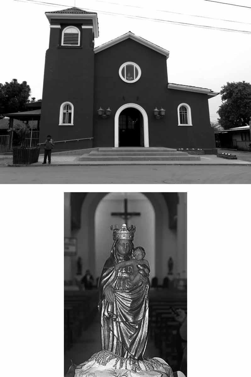 Abajo: Estatua en recuerdo de doña María Irene Hormazabal y Cisternas, la Hermana Maria, a cuyo tesón se debe la construcción del Templo, a fines del siglo XIX.