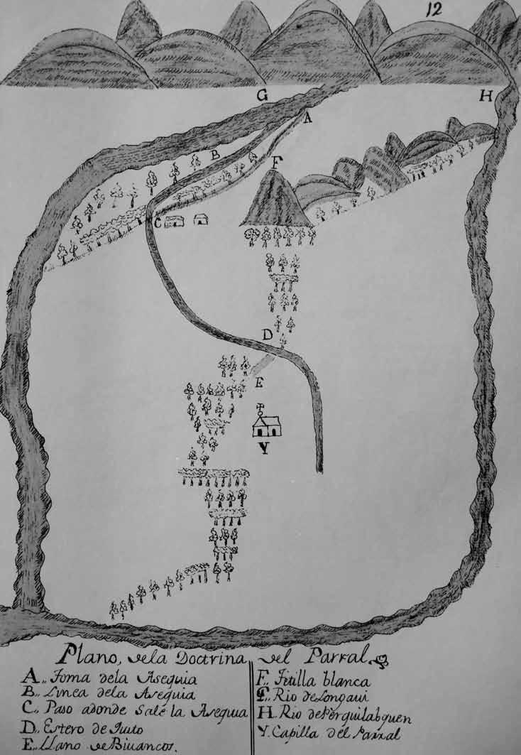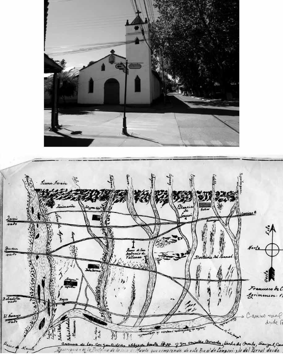 Abajo: Plano de 1778 con la llamada Isla del Maule y la identificación de las diversas capillas existentes en esa época.