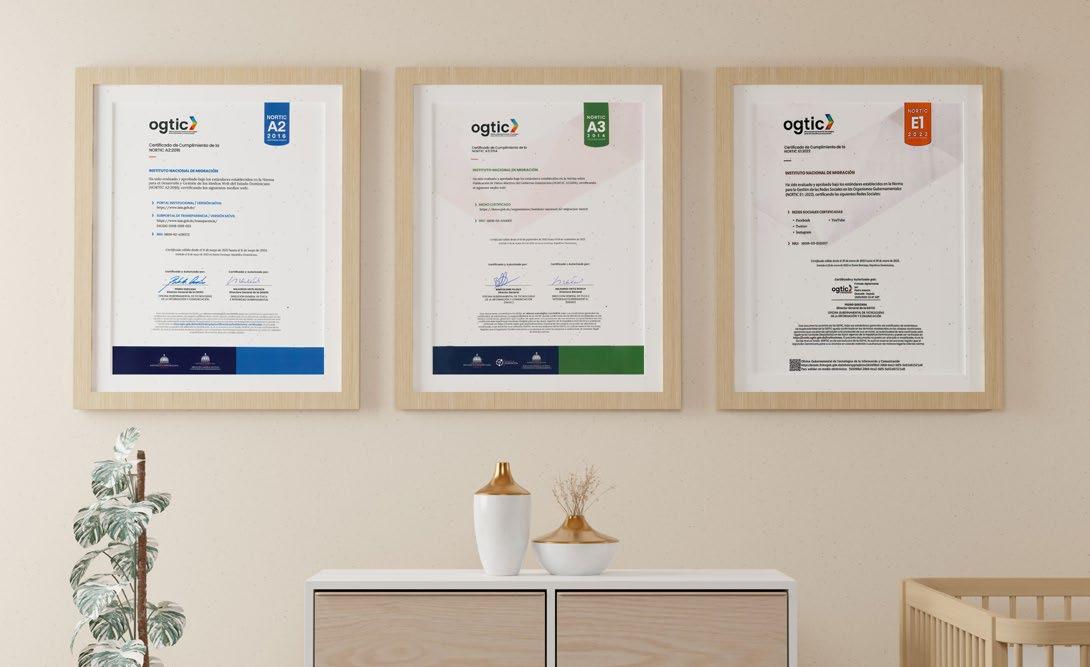 Asimismo, hemos tenido avances importantes en el Uso de TIC e Implementación de Gobierno Electrónico en el Estado Dominicano (iTICge) con la certificación y recertificación de un conjunto de normas que avalan el desarrollo alcanzado por la institución en estos últimos cuatro años: