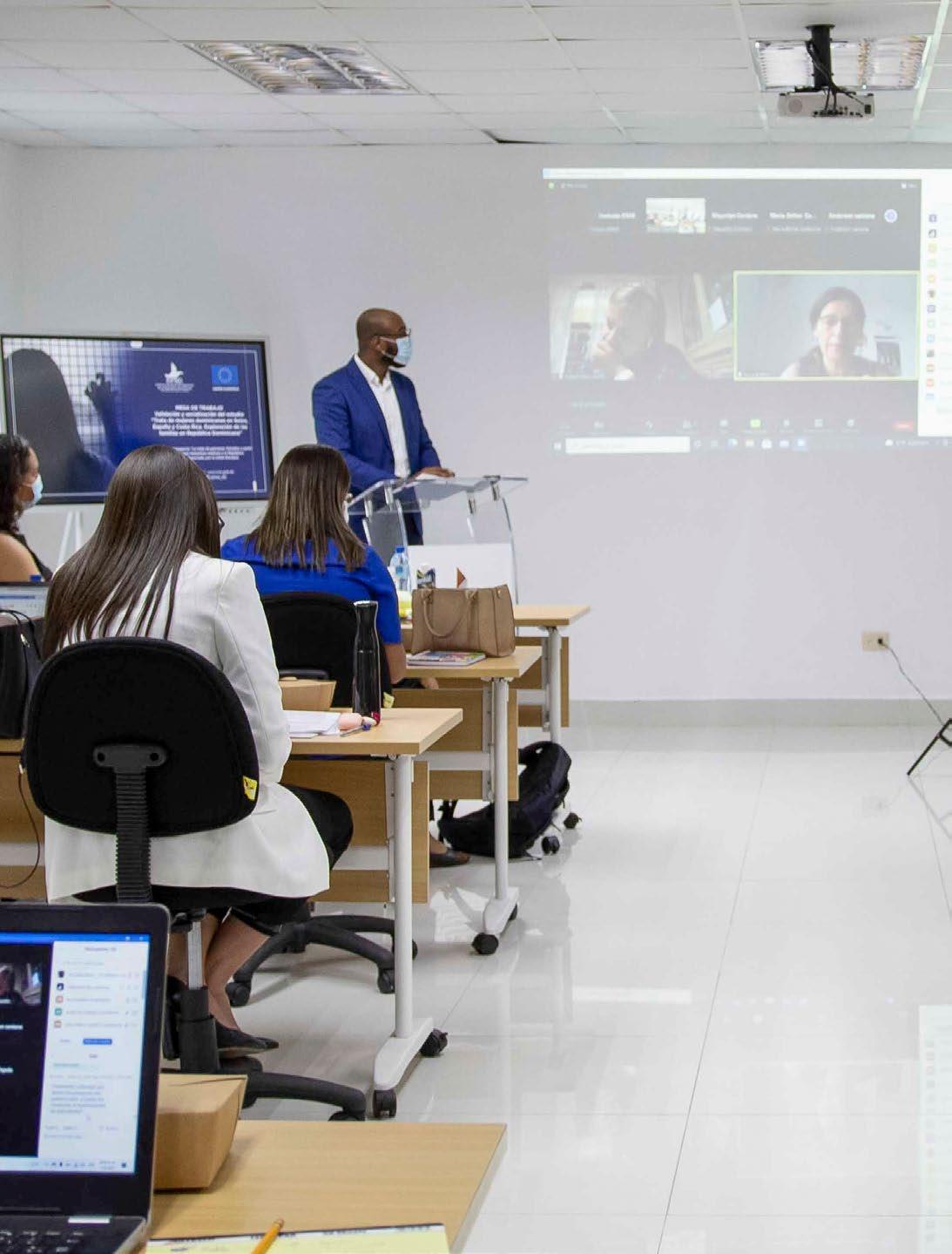 Se llevaron a cabo varias actividades formativas especializadas en colaboración con diferentes organizaciones. Se impartió el curso «Formación de formadores en documentos falsos», en colaboración con el FIIAPP. También se realizó el curso «Perfilación, indicadores y detección de víctimas de trata de seres humanos» con la colaboración del FIIAPP, la OIM y el MEPyD. Se organizó un Intercambio Técnico Internacional entre Panamá, Costa Rica y la