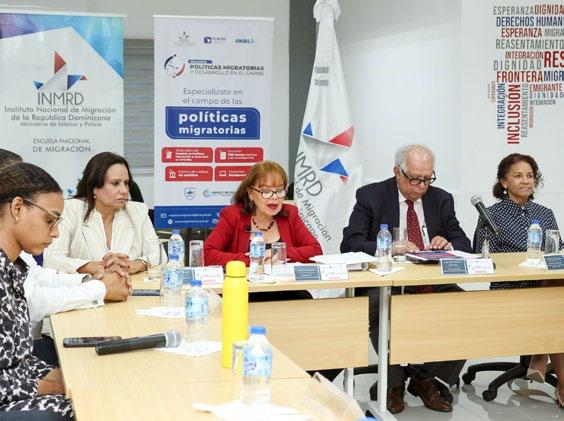 Ha sido significativo el esfuerzo desplegado por el INM RD en el fortalecimiento de su oferta de formación de recursos humanos dirigido a importantes instituciones estales (DGM), instancias militares especializadas en la vigilancia fronteriza (CESFRONT) y programas especiales orientados al tema de la trata y los derechos humanos, a lo que se une la puesta en marcha del Programa de Maestría en Políticas Migratorias y Desarrollo en el Caribe cuyo ejecución ha permitido una presencia regional del país a escala centroamericana y caribeña. Esta maestría, que cuenta a la fecha con dos cohortes de treinta y cinco estudiantes cada una, es el resultado de un esfuerzo interinstitucional entre el INM RD, la Universidad Iberoamericana (UNIBE), la Facultad Latinoamericana de Ciencias Sociales (FLACSO) y el Instituto de Educación Superior en Formación Diplomática y Consular Dr. Eduardo Latorre Rodríguez (INESDYC).