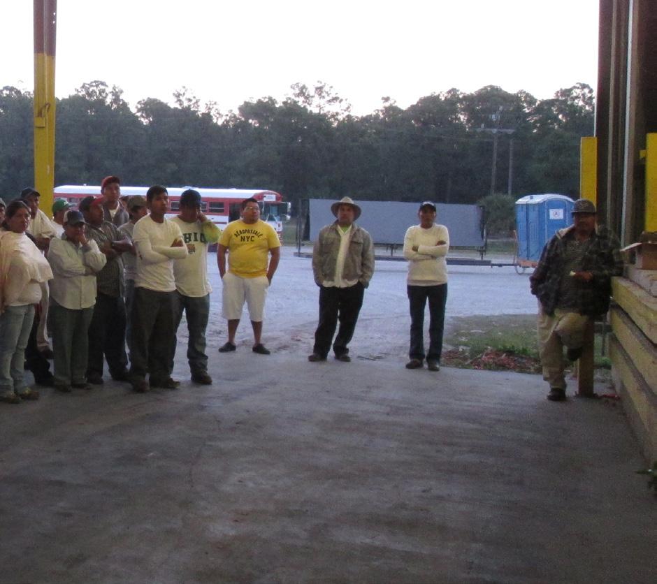 Trabajadores agrícolas temporarios recibiendo entrenamiento en Immokalee, Florida, Estados Unidos. Crédito: Fabiola Mieres