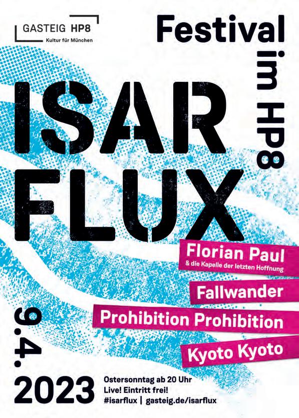 9.4. GASTEIG HP8 Isarflux 2023 · Fun for free organisiert wie immer von den GasteigAzubis. Krautrock, Electro, Singer/ Songwriter, Deutsch-Pop und mehr mit den Liveacts: Florian Paul & die Kapelle der letzten Hoffnung (20 Uhr, Halle E); Fallwander (21 Uhr, Halle E); Prohibition Prohibition (22 Uhr, Saal X) Kyoto Kyoto (23.45 Uhr, Saal X).