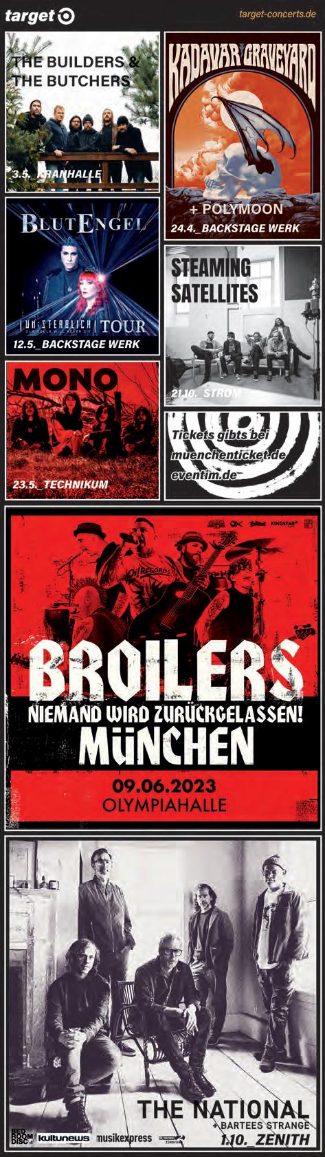 Heft 4/2023 Liebe Leserinnen und Leser, warum Jugendliche im Kino wegen einer TikTok-Challenge randalieren, was in der Paketposthalle, dem Kaufhof und im Gasteig als Zwischennutzung passieren soll und wie es bei Caspar Plautz am Viktualienmarkt schmeckt, erfahren Sie bei uns. Außerdem was beim Female Peace Palace-Festival im den Kammerspielen und der Monacensia (Ortsgespräch, S. 14) geboten wird, wo Bestsellerautorin Judith Hermann und Tocotronic-Sänger Dirk von Lowtzow lesen, wie man Karten für das Deutsche Theater und die Olympiahalle gewinnen kann und was für neue Filme ins Kino kommen, ebenfalls. Tim Fischer huldigt dem großen Georg Kreisler, die Ballettfestwoche im Nationaltheater und das Radikal-Jung-Festival im Volkstheater zeigen große und neue Bühnenkunst und wo Stars wie Tori Amos und Charley Cunningham auftreten, können Sie außerdem in diesem Heft erfahren … und unter www.in-muenchen.de Einen schönen Frühling wünscht, Ihre Redaktion