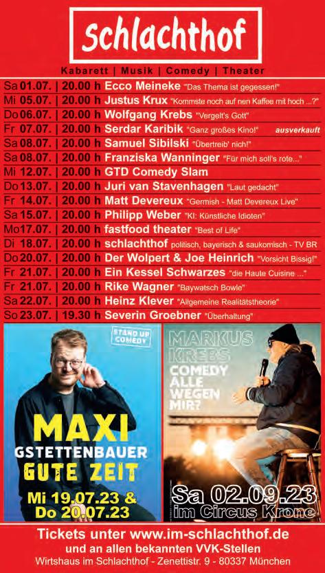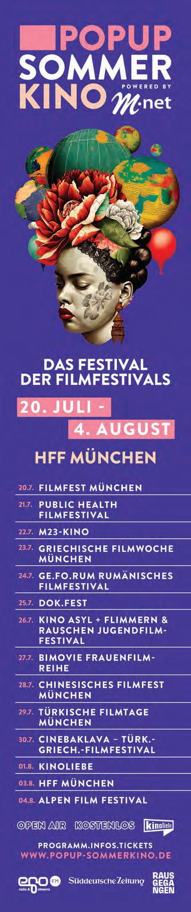Liebe Leserinnen und Leser, wie sich München wieder als Pop-FestivalStadt mit Rolling Loud und Superbloom zurück ins Spiel gebracht hat, was beim Sommernachtstraum, der Eröffnung des Interimskulturzentrums Fat Cat im Gasteig, beim Kunstareal-Fest und der Jean Paul Gaultier: Fashion Freak Show geboten ist, und wie es im Mahjong Roof Garden, in der Hörger Tafernwirtschaft und im Daisy Cave schmeckt, lesen Sie auf den nächsten Seiten. Wie Alex Novak und Sven Schöcker die Antike in der Glyptothek auf die Bühne bringen wollen (Ortsgespräch, S. 16), welche fantastischen Filme im Kino und Open Air laufen, was beim Südwind-Festival und den Opernfestspielen aufgeführt wird, und welche Klassik-, Jazz-, Pop- und Elektro-Acts beim Denkmalschutzsommer in der Alten Münze und bei 30 Jahre Muffatwerk spielen, erfahren Sie ebenfalls bei uns im Heft und natürlich auf www.in-muenchen.de Einen aufregenden Sommer wünscht, Ihre Redaktion
