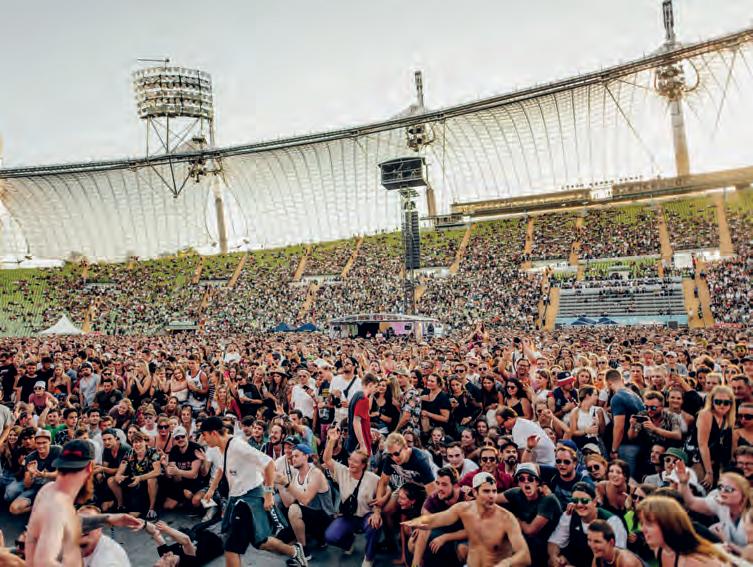 2016 kam das Festival wieder und hatte mit Iggy Pop und Iron Maiden erneut Hochkaräter im Programm. Diesmal hatte man im Stadion zwei Bühnen nebeneinander aufgebaut, welche wechselweise bespielt wurden. 2017 fiel das Festival aus und 2018 kehrte es in deutlich abgespeckter Zwei-Tages-Version zurück und wurde auf dem Königsplatz veranstaltet. Danach war wieder Ruhe. Bereits 2020 wollte das breit aufgestellte superbloom im Olympiapark debütieren, was aus bekannten Gründen nicht sein durfte. Letzten September war es dann endlich soweit und AnnenMayKantereit, Calvin Harris u.v.a. brachten den Pop in den Olympiapark. Und damit sind wir im Jetzt angekommen: Neben der zweiten Ausgabe des superbloom geht mit dem rolling loud das weltweit führende Hip-HopFestival an den Start. München ohne Festivals geht eben doch nicht. franz furtner