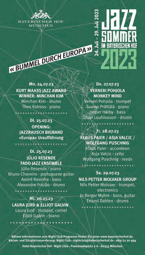 Ateliers und Probenräume. Ob bei Jazzklängen im Biergarten, mit Kindern im Soccer Court, zum Sonnenuntergang auf dem Kulturdachgarten oder zum Tanzen in der Black Box: hier ist für alle mit tollen Acts wie Amelie//23 Karat, Sonofold, dem Bud Spencer Heart Chor, Step2diz, DJane Latin Scene Munich sowie Mini-München, der Theatergruppe des Bellevue di Monaco und dem Sarre Kinder- und Jugendtheater einiges geboten. Infos unter www.fatcat-muc.de und www.gasteig.de
