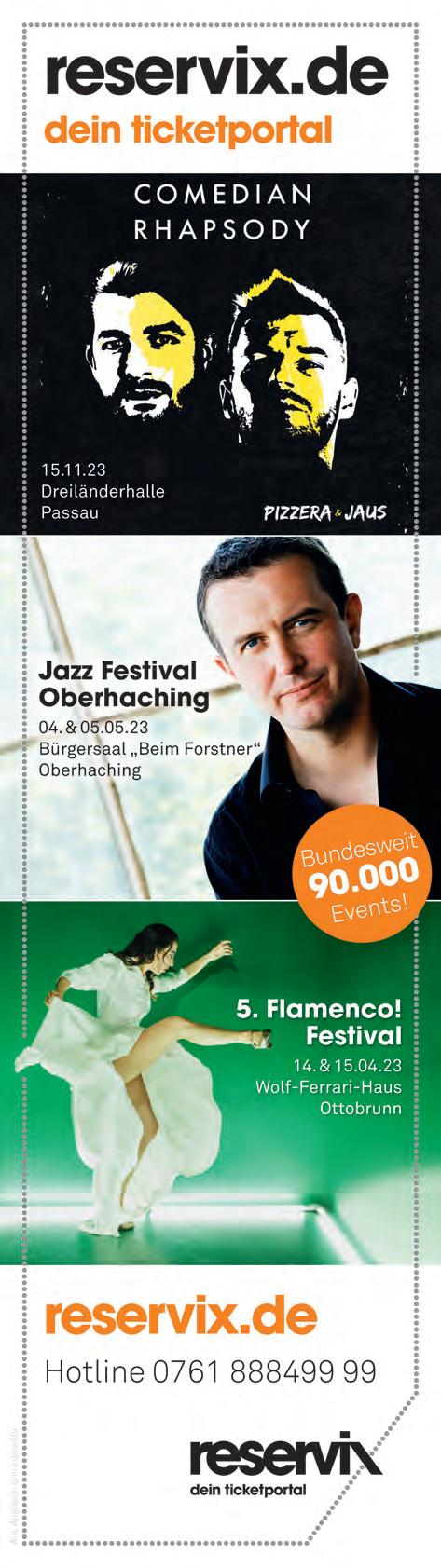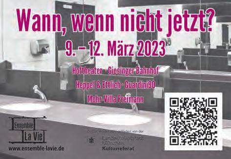 Liebe Leserinnen und Leser, warum immersive Liveerlebnisse der bildenden Kunst ein neues Publikum erschließen, was es für Neuheiten auf der Internationalen Handwerksmesse, Garten München und Food & Life gibt, wo Bayern und Iren den St. Patrick’s Day und überhaupt alle den Weltfrauentag feiern und wie es im Fräulein Wagner und Ahimsa schmeckt, lesen Sie auf den nächsten Seiten. Außerdem was Organisatorin Anna Kleeblatt alles über das große Flower Power Festival berichten kann, welche Filme neu im März anlaufen und worum es in Steven Spielbergs „Die Fabelmans“ geht. Was Andreas Dorau & Sven Regener lesen, in welcher Form das Gärtnerplatztheater Mata Hari aufführt, wo die ägyptische Sopranistin Fatma Said singt und Emiliana Torrini, Billy Nomates, Thurston Moore und Lewis Capaldi auftreten, erfahren Sie ebenfalls bei uns im Heft und unter www.in-muenchen.de Gute Unterhaltung wünscht, Ihre Redaktion