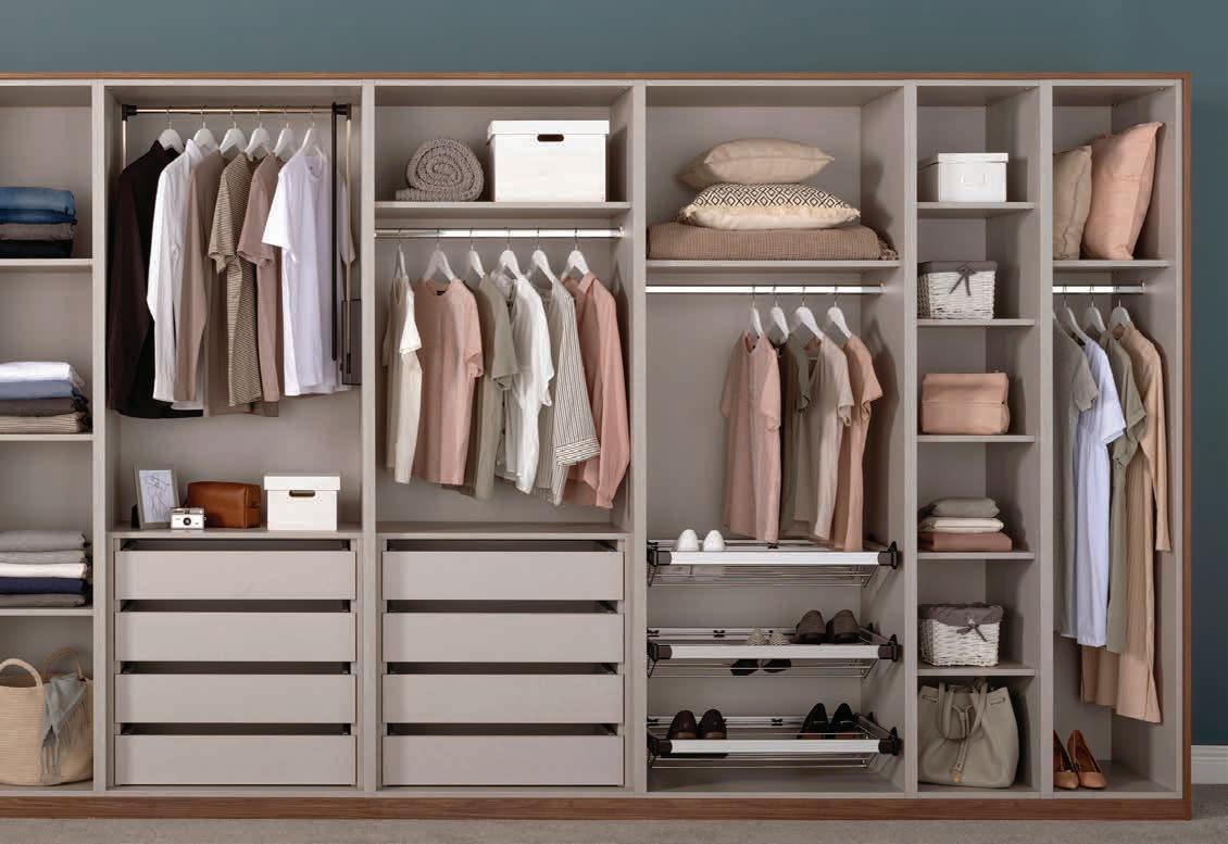 Our new internal fitments and accessories offer you the choice to create the perfect storage environment, for example your shoes getting their own racks, your trousers hung on rails, your sweaters and socks stored tidily away in their own drawer unit.