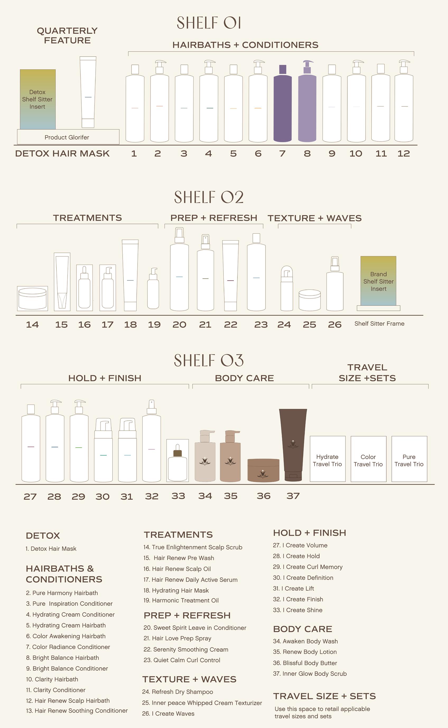 Use our curated merchandising materials to help salon guests easily navigate and shop products.