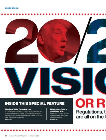 VISIO INSIDE THIS SPECIAL FEATURE Plan Now While Taxes Are Low If Joe Biden and a Democratic majority are elected, taxes are likely to increase. If Donald Trump is reelected, chances are good this will still be a low tax year, historically speaking. PAGE 23
