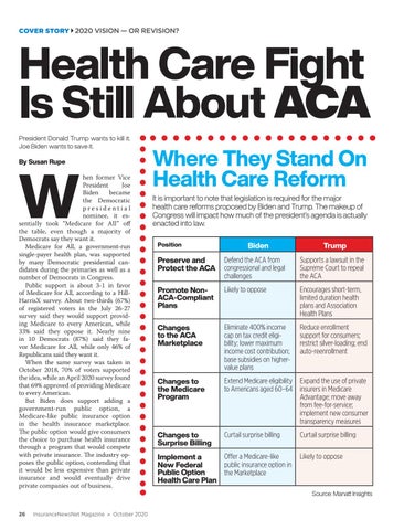 Health Care Fight Is Still About ACA President Donald Trump wants to kill it. Joe Biden wants to save it.