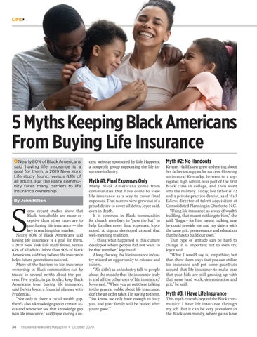 ome recent studies show that Black households are more receptive than other races are to purchasing life insurance — the key is reaching that market. Nearly 80% of Black Americans said having life insurance is a goal for them, a 2019 New York Life study found, versus 63% of all adults. More than 90% of Black Americans said they believe life insurance helps future generations succeed. Many of the barriers to life insurance ownership in Black communities can be traced to several myths about the process. Five myths, in particular, keep Black Americans from buying life insurance, said Delvin Joyce, a financial planner with Prudential. “Not only is there a racial wealth gap, there's also a knowledge gap in certain areas and where we see that knowledge gap is in life insurance,” said Joyce during a re34
