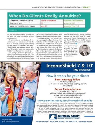 ASSUMPTIONS VS. REALITY: CONSIDERING INCOME RIDERS ANNUITY