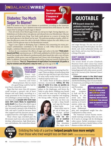 Diabetes Association. Type 2 diabetes is the most common form of the disease. So, what causes this? Is eating too much sugar to blame? First, let’s look at how blood sugar levels can end up too high. During digestion, carbohydrates are broken down into glucose and released into your bloodstream. Glucose is a good news/bad news thing. Your body needs glucose as a source of energy, but too much glucose in the blood can be toxic. The pancreas produces insulin, which allows the glucose to enter the cells in the body. Diabetes impairs the cells’ ability to use insulin, and the glucose stays in the bloodstream instead. Sugar is one culprit in developing Type 2 diabetes, but consuming too many processed carbohydrates contributes to the disease as well. Other factors are excess weight, a sedentary lifestyle and certain medications. So how do you counteract the effects of sugar and carbs in the diet? Think plantbased and fiber, nutritionists say. A 2019 study published in JAMA Internal Medicine found that people who followed a predominantly plant-based diet with a mix of fruits, vegetables, whole grains, nuts and legumes had a lower risk of developing Type 2 diabetes. In addition, increasing your fiber intake will go a long way toward combating the onset of diabetes. The U.S. Department of Agriculture recommends 25 grams a day for women and 38 grams a day for men, up to the age of 50.