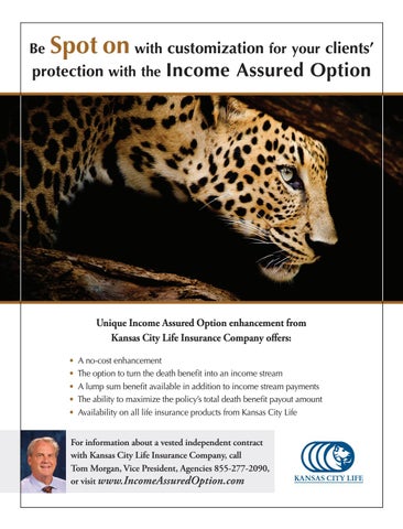For information about a vested independent contract with Kansas City Life Insurance Company, call Tom Morgan, Vice President, Agencies 855-277-2090, or visit www.IncomeAssuredOption.com