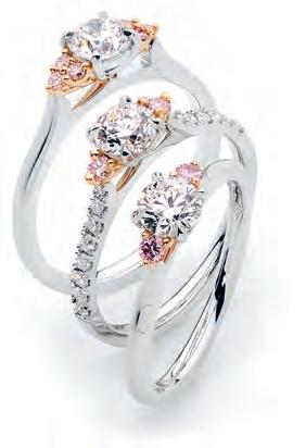 Spectacular Trilogy Engagement Ring featuring 1ct D Colour White Argyle Diamond set with two 14point exquisite Australian Argyle Pink Diamonds and 21 Pave’ set White Argyles along the shoulders, Maleny Jewellers, 5494 3477