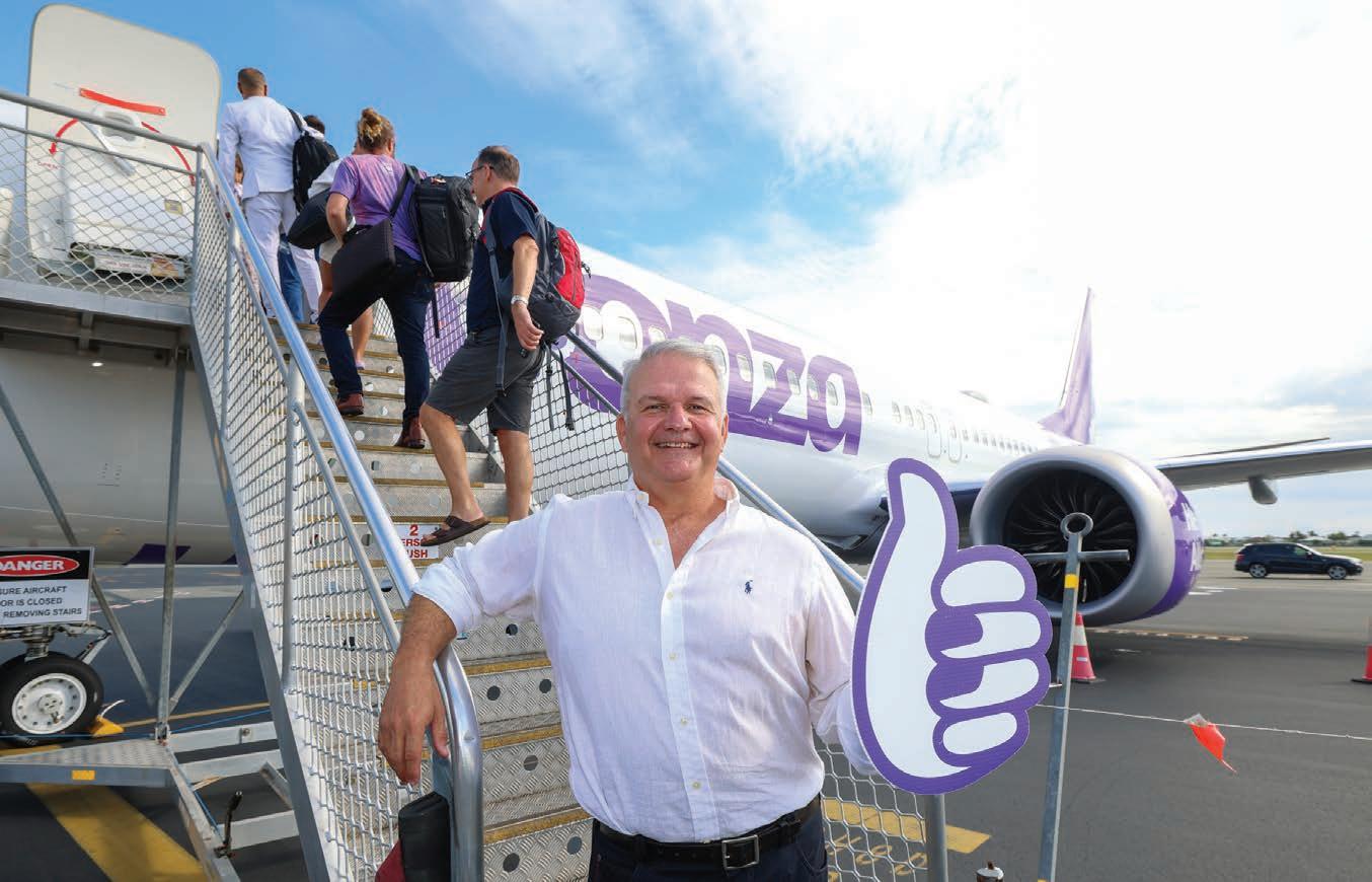 A sea of purple celebrated the first Bonza flight taking off with a return trip between the Sunshine Coast and the Whitsunday Coast.