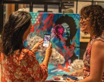Using an online Augmented Reality (AR) program, Artivive, Sarah takes a photo of her work which she can then overlay with animation.
