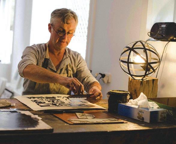 Kim captures a slower pace of life in the natural world with relief, contact, mono and intaglio printmaking. She offers prints online and runs small printmaking workshops from her Maleny studio. North Maleny Phone 0413 384 426 kimherringe.com.au