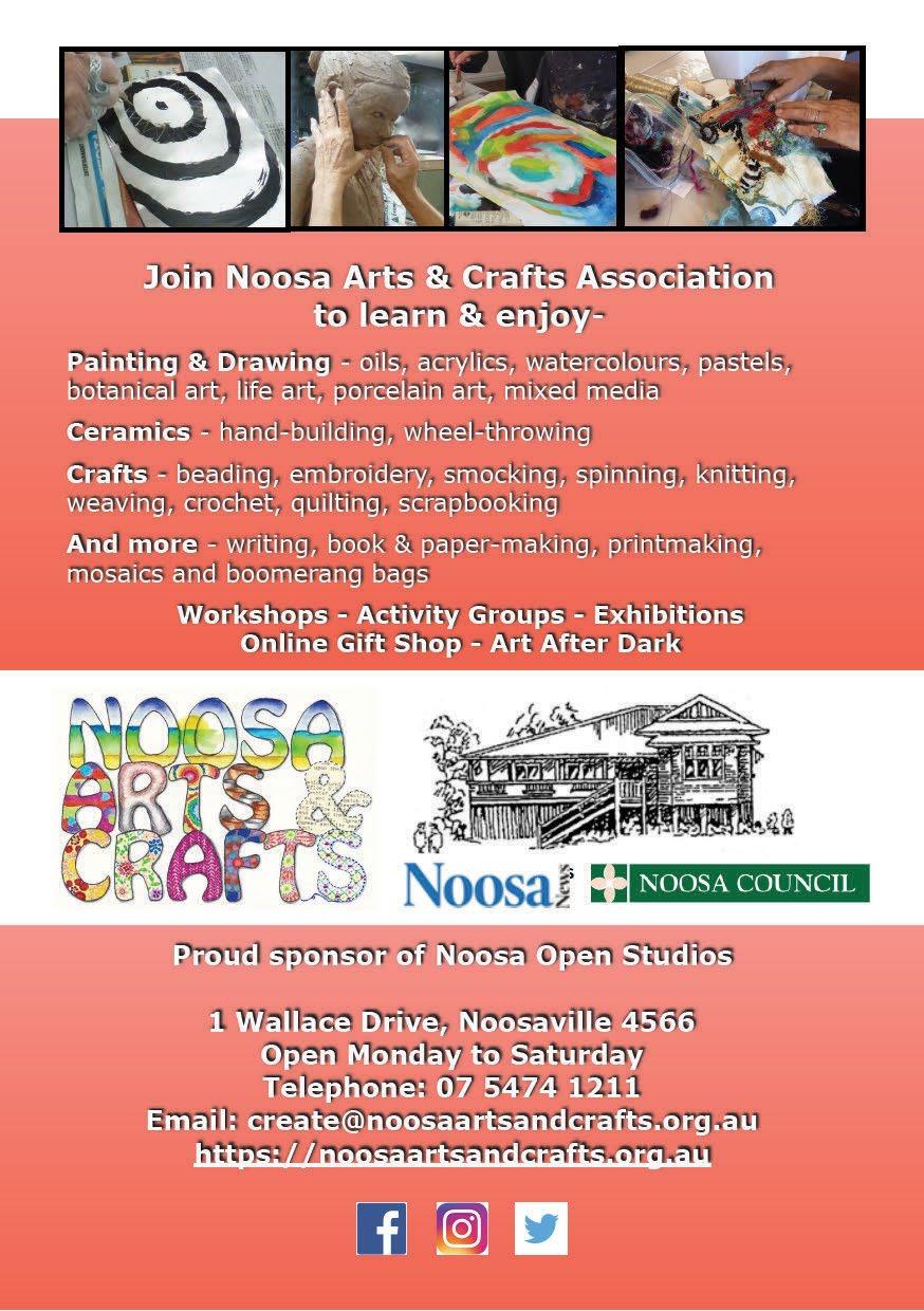 We hope that the thousands of visitors to Noosa Open Studios this year are inspired by the wonderful array of art, and the creative beings who make it. We are grateful to the many artists who take the time to prepare and open their private studios to the public, providing the opportunity for a two way exchange around the love of art and the creative processes. We thank them all for their willingness to share their studios, their art and often, their art secrets, with the wider community.