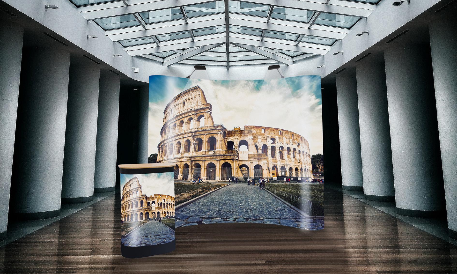 Both are in stock now. Tension banners are lightweight banners designed for rapid deployment. You can offer them to your customers as a temporary display solution, and they can even change graphics themselves.