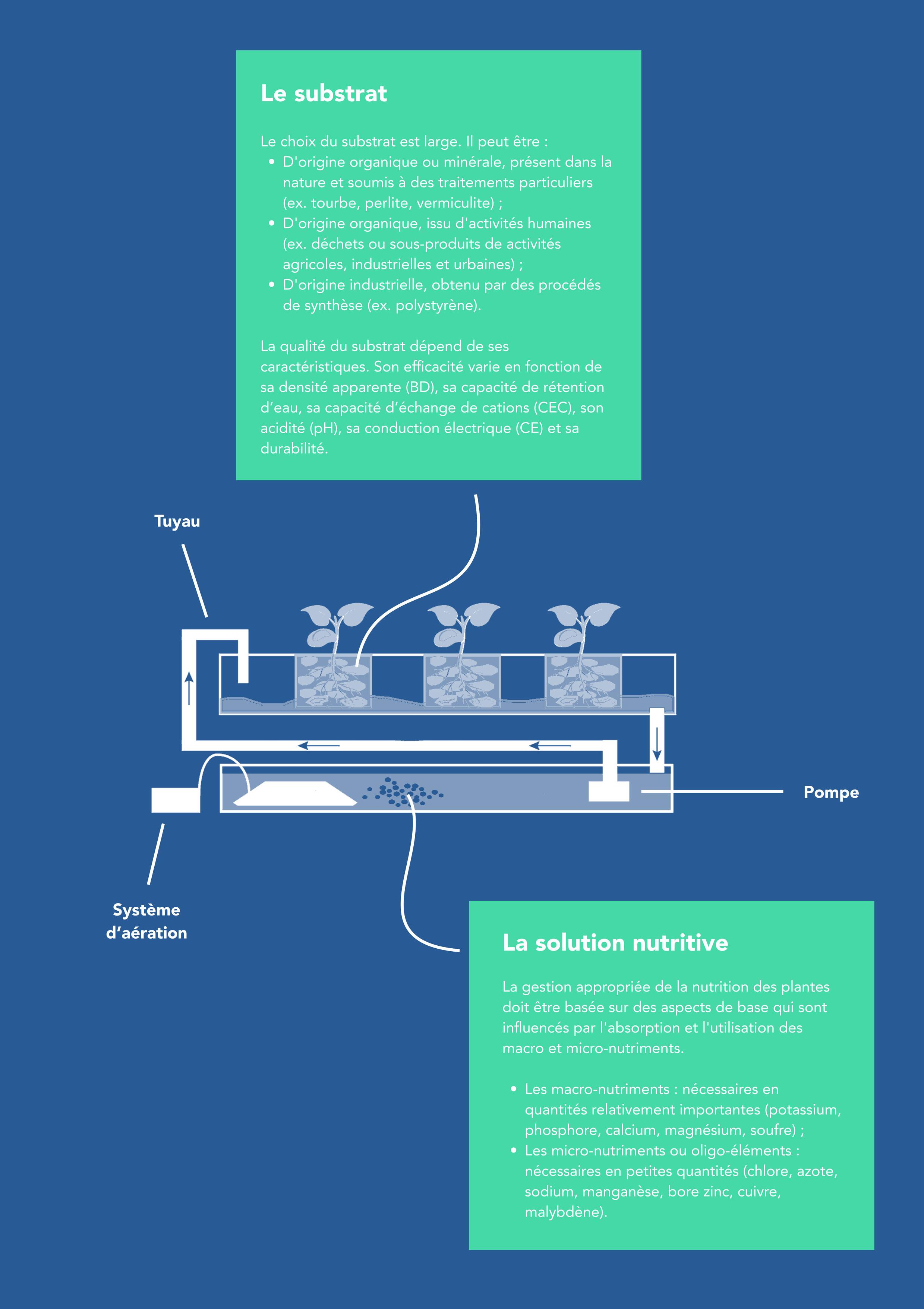 Toutefois, il semble que ces avantages reposent sur une certaine maîtrise des différentes infrastructures hydroponiques, afn d’en assurer le fonctionnement effectif et écologique tout en contrôlant les coûts des infrastructures et les coûts de production au long du cycle agricole.