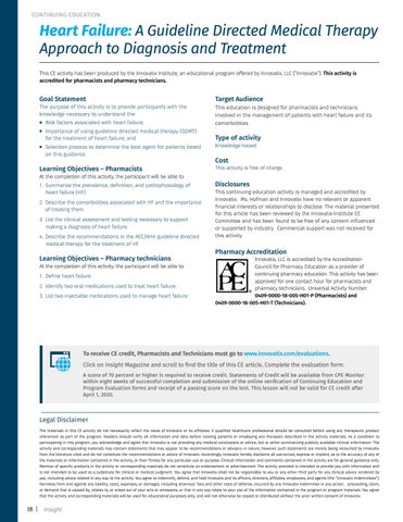 Heart Failure: A Guideline Directed Medical Therapy Approach to Diagnosis and Treatment This CE activity has been produced by the Innovatix Institute, an educational program offered by Innovatix, LLC (“Innovatix”). This activity is accredited for pharmacists and pharmacy technicians.