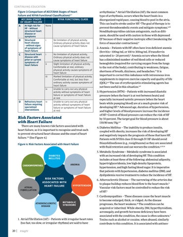 CONTINUING EDUCATION Figure 3: Comparison of ACCF/AHA and D patients. (See Appendix B.)6,7Stages of Heart Failure and NYHA Functional Classifications6, 7 ACC/AHA STAGES OF HEART FAILURE At high risk for A HF - without structural heart disease or symptoms Structural B heart disease - without signs of symptoms of heart failure Structural heart C disease with prior or cyrrent symptoms of heart failure