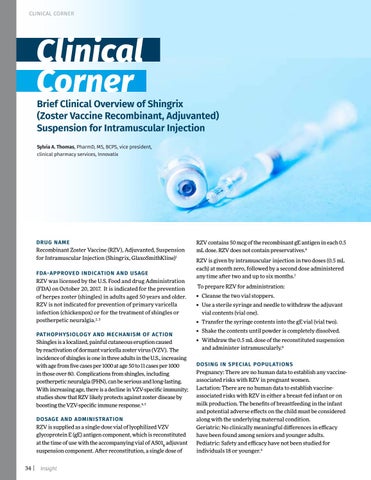 Brief Clinical Overview of Shingrix (Zoster Vaccine Recombinant, Adjuvanted) Suspension for Intramuscular Injection Sylvia A. Thomas, PharmD, MS, BCPS, vice president, clinical pharmacy services, Innovatix