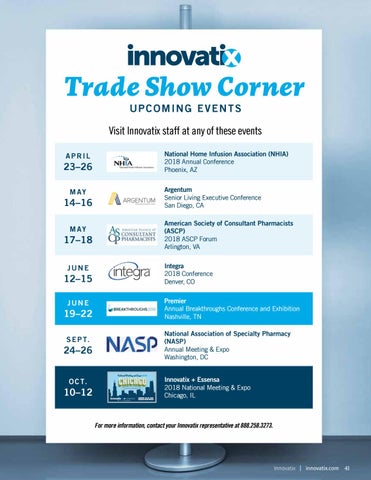 Visit Innovatix staff at any of these events National Home Infusion Association (NHIA) 2018 Annual Conference Phoenix, AZ
