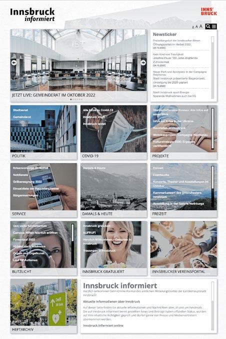 Impressum: Innsbruck – Die Landeshauptstadt informiert – Offizielle Mitteilungszeitung Auflage: 79.000 Stück; geht per Post an alle Haushalte in Innsbruck · Eigentümerin, Herausgeberin, Verlegerin: Stadtgemeinde Innsbruck Redaktion: Kommunikation und Medien, Stadt Innsbruck, Colingasse 5a, 6020 Innsbruck, Tel.: +43 512 5360
