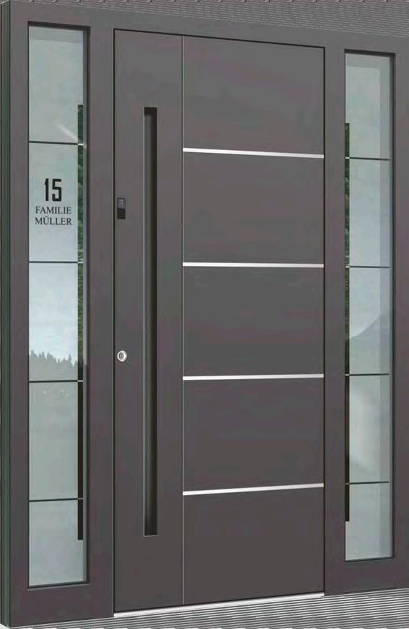 Ogni porta d’ ingresso in alluminio Inotherm ha una targhetta con i dati della porta. La targhetta contiene tutti i dati importanti della documentazione tecnica dell'ordine e la produzione della porta. I dati sono incisi nella targhetta di acciaio inox tramite laser. Questa incisione assicura la leggibilità e disponibilità dei dati a lungo termine.