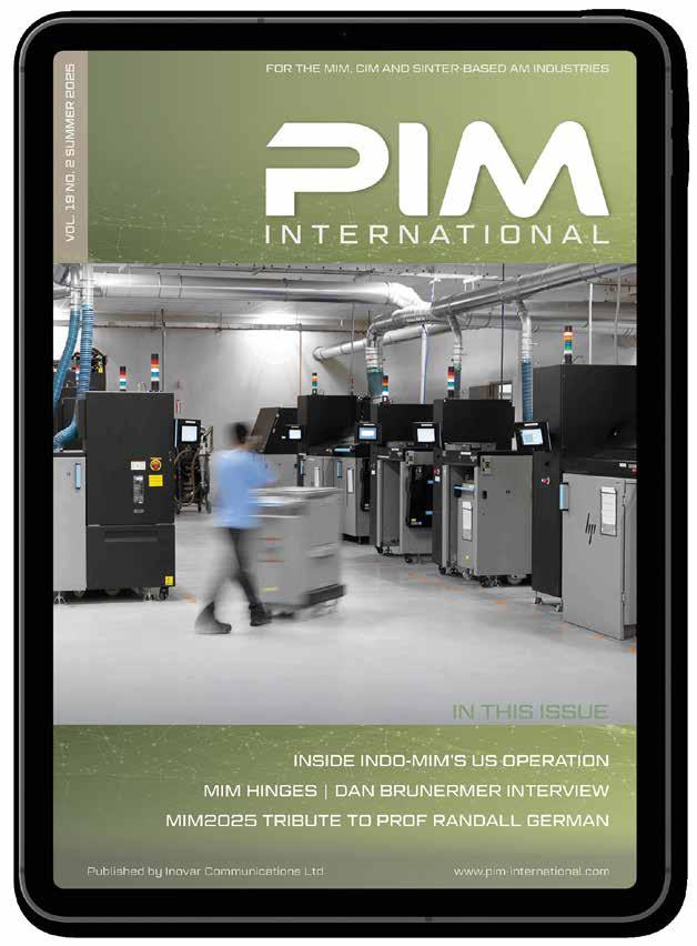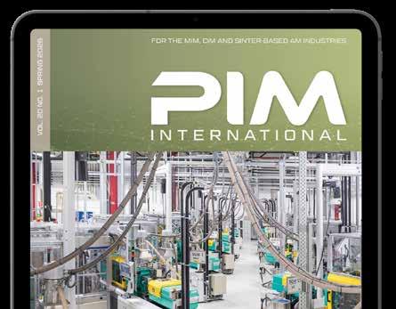 PIM International is the only business-to-business publication dedicated to reporting on the technical and commercial advances in the MIM, CIM, and sinter-based Additive Manufacturing industries. Available in both digital and print formats, PIM International is the perfect platform to promote your company to a global audience.