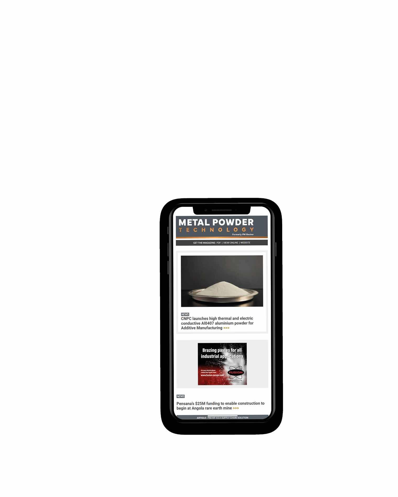 Newsletter subscribers also benefit from a free digital subscription to Metal Powder Technology magazine.