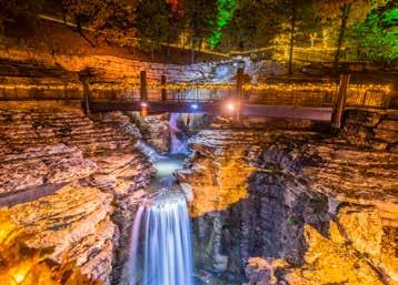 Big Cedar Lodge’s 2.5-mile Lost Canyon Cart Tour at Top of the Rock winds through the Ozarks past stunning rock formations, beautiful waterfalls and views of Table Rock Lake a few miles south of Branson, Missouri. While the golf cart ride offers spectacular vistas in the daytime, until recently it was idled after dark.
