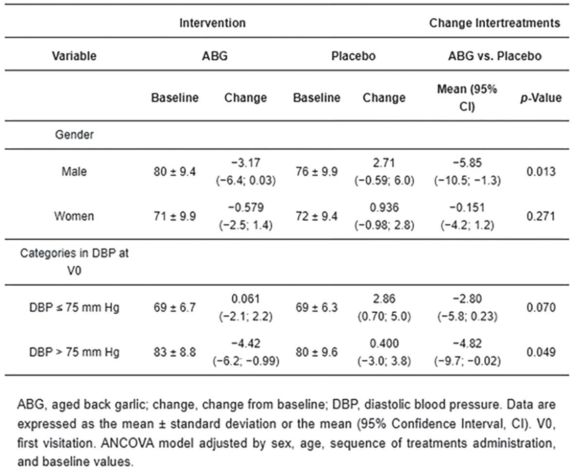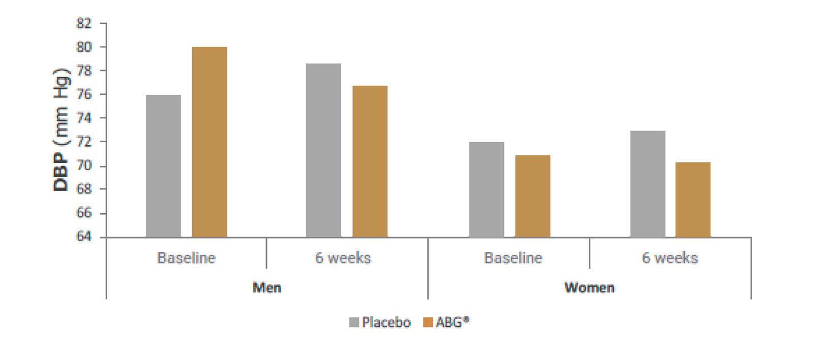 ekstrakt ABG+® značajno smanjio dijastolički krvni tlak (DBP) za 5,85 mm Hg u prosjeku, u usporedbi s placebom. (Slika 2) Pozitivan učinak bio je posebno vidljiv kod muškaraca. “Čak i malo smanjenje od 5 mm Hg u dijastoličkom krvnom tlaku ima značajan utjecaj na smanjenje rizika od moždanog udara i drugih vaskularnih događaja”, objašnjava dr. Alberto Espinel.