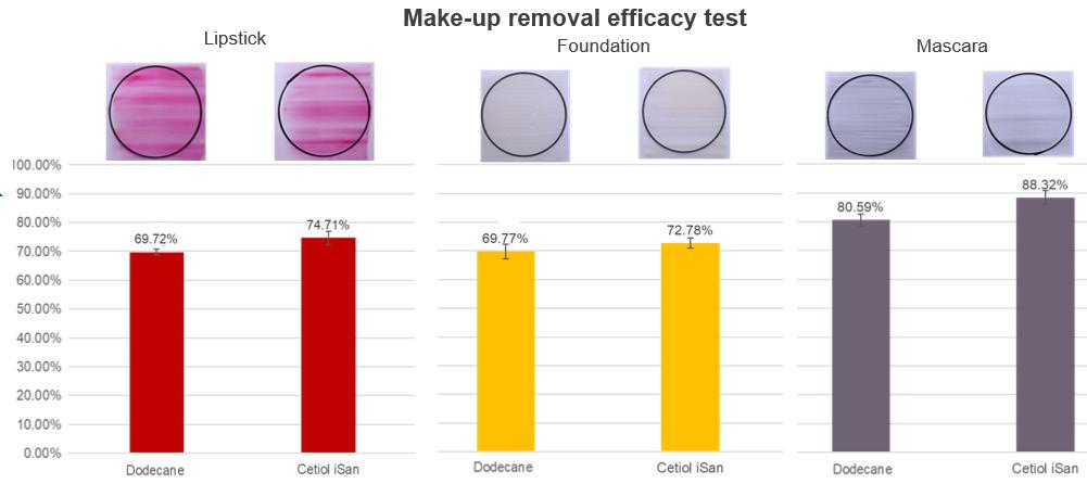 It enabled the formulation of a silicone-free biphasic make up remover that provides excellent performance when removing various decorative cosmetics. It is also tear-free, non-sticky, suitable for cold processing, and contains content that is 98% of natural origin in line with ISO 16128. In fact, our formulation performed even better than the silicone-based product.